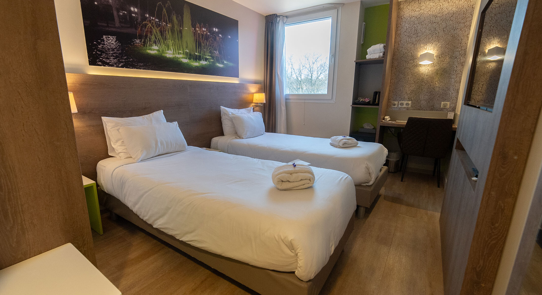 Vous voyagez avec un ami, votre enfant ou un collègue ? La Chambre Standard Twin et ses deux lits simples est idéale pour votre séjour. Vous disposez de tous les équipements d’une chambre standard, tels que la smart TV connectée, la douche à l’italienne, une climatisation réversible, un petit bureau et une connexion Wi-Fi sécurisée très haut débit.